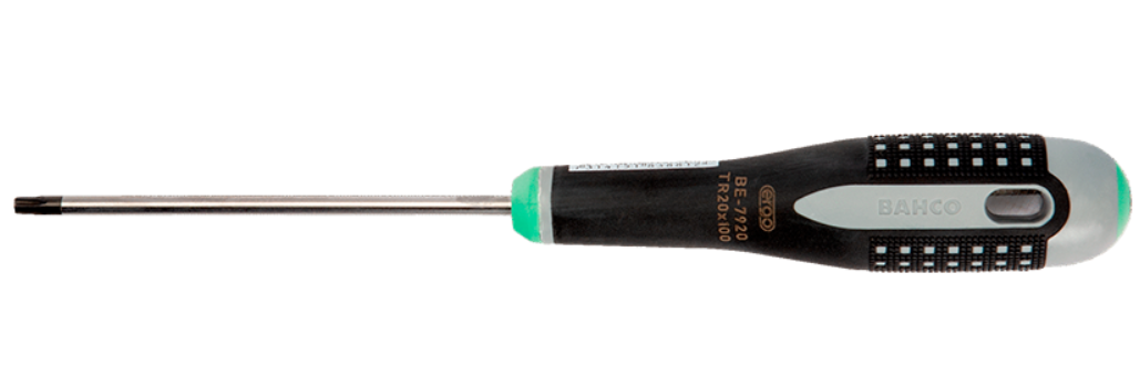 Zaprojektowany zgodnie z koncepcją ERGO™, wkrętak zapewnia wysoki komfort pracy oraz optymalną ergonomię. Trzykomponentowa rękojeść gwarantuje pewny chwyt, skuteczne przenoszenie siły oraz ograniczenie zmęczenia dłoni nawet podczas intensywnego użytkowania. Kolorowe oznaczenia na obu końcach rękojeści ułatwiają szybką identyfikację narzędzia – z wyjątkiem najmniejszych rozmiarów (T7–T9), gdzie ze względu na kompaktowe wymiary nie są stosowane.
