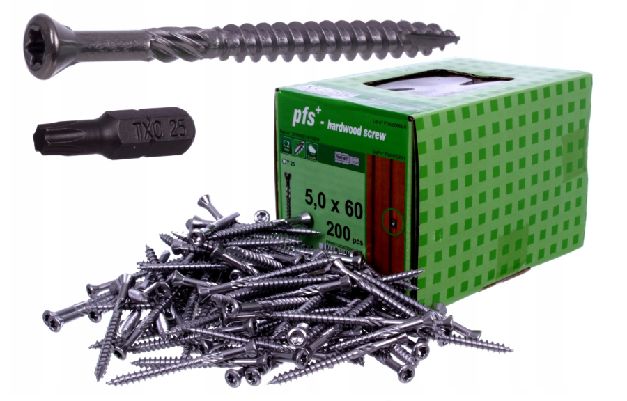 Najwyższej jakości wkręt nierdzewny firmy "pgb" do deski tarasowej oraz twardego drewna.