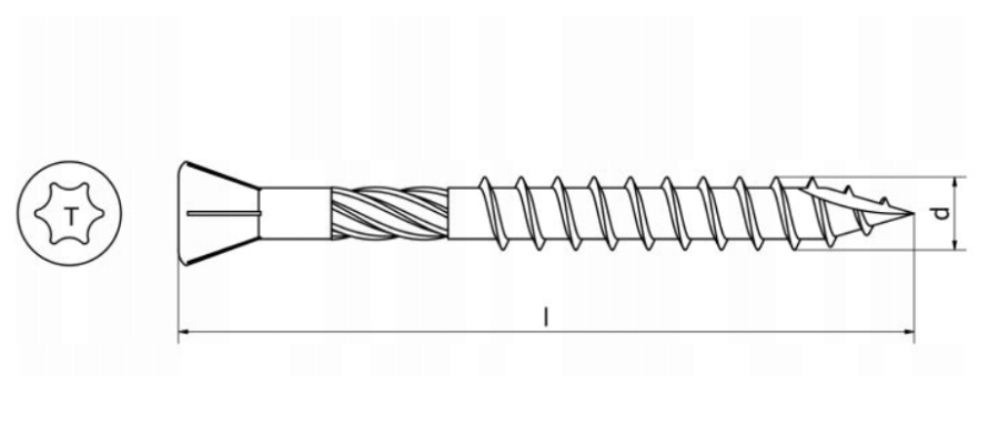 Najwyższej jakości wkręt nierdzewny firmy "pgb" do deski tarasowej oraz twardego drewna.