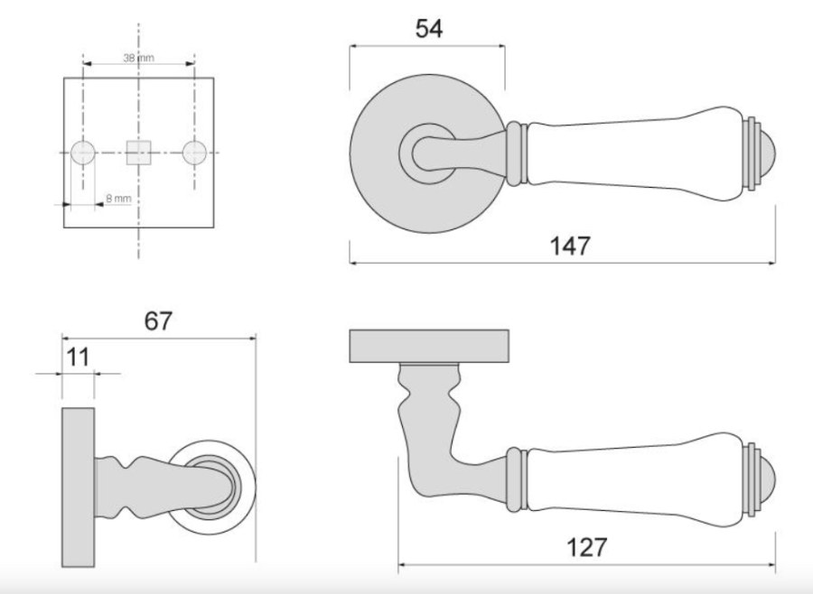 - Blaszka montażowa pod klamkę: 2szt