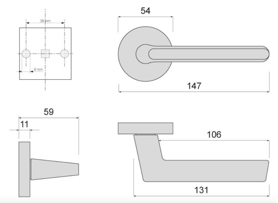 - Blaszka montażowa pod klamkę: 2szt