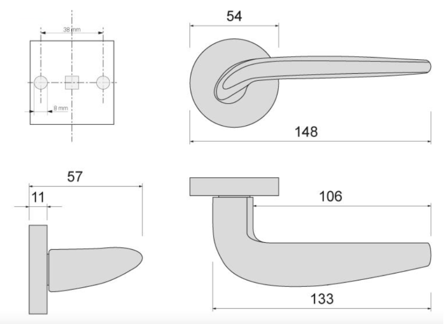 - Blaszka montażowa pod klamkę: 2szt