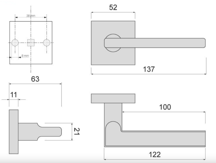- Blaszka montażowa pod klamkę: 2szt