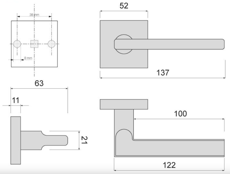 - Blaszka montażowa pod klamkę: 2szt