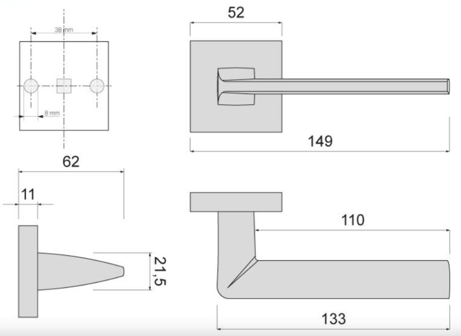 - Blaszka montażowa pod klamkę: 2szt