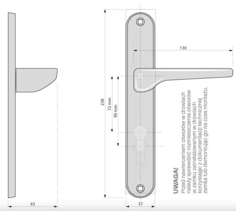Klamka drzwiowa K-268-90 DOMO STANDARD LINE VERAMET. Drzwi wewnętrzne 40-62mm