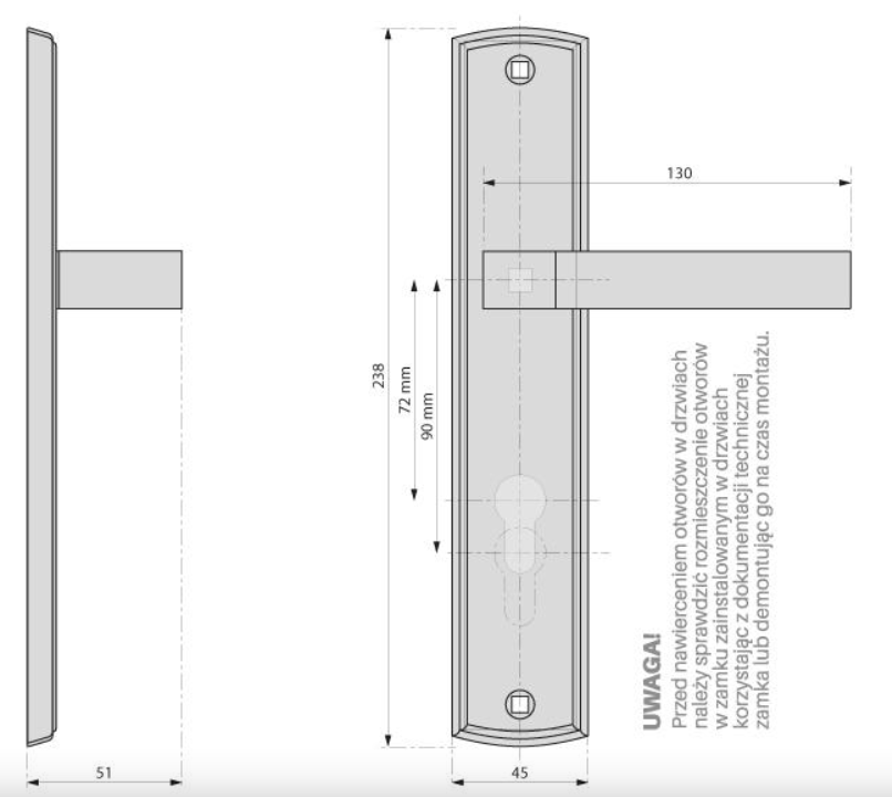 Klamka drzwiowa K-427-72 DECO STANDARD LINE VERAMET. Drzwi wewnętrzne 40-62mm