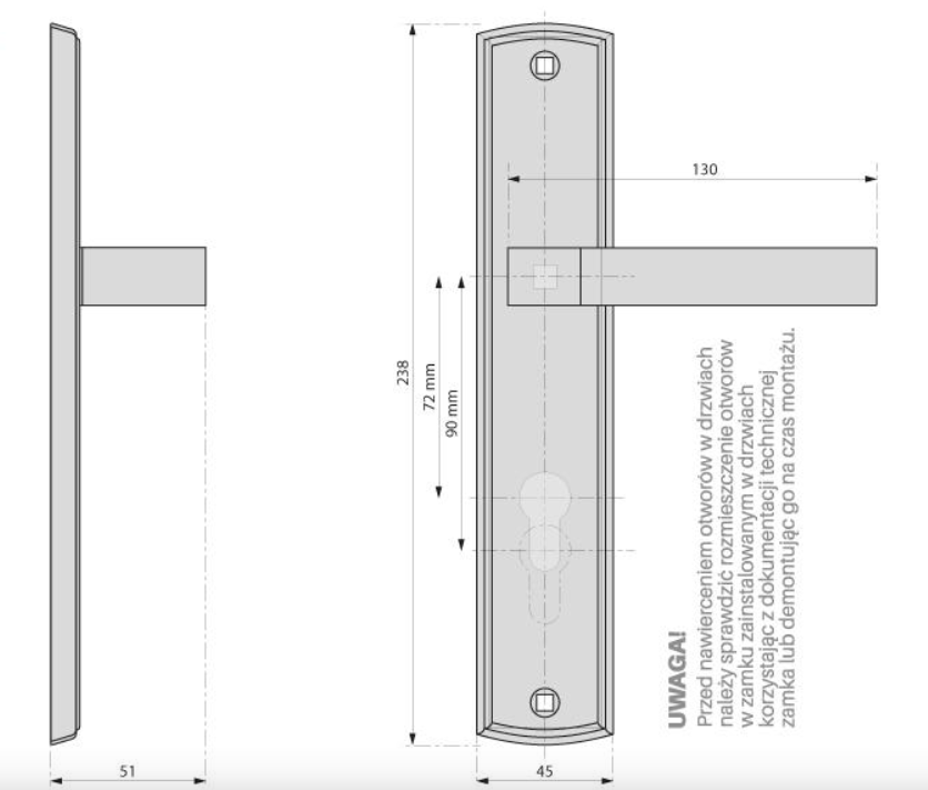 Klamka drzwiowa K-428-72 DECO STANDARD LINE VERAMET. Drzwi wewnętrzne 40-62mm