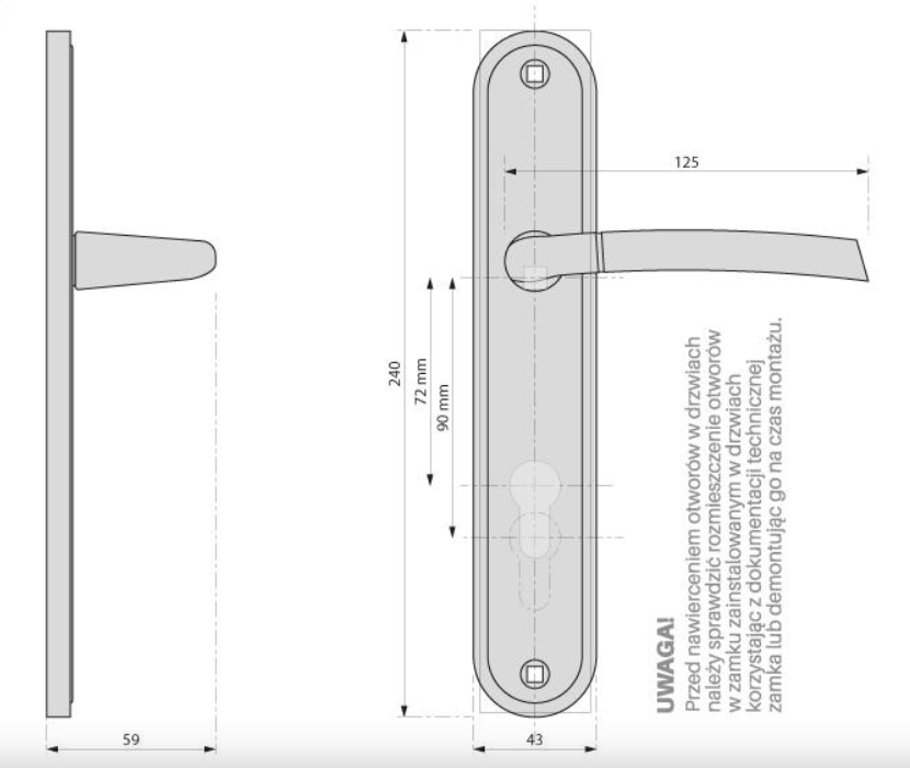 Klamka drzwiowa K-827-72 G8/G2. Drzwi wewnętrzne 40-62mm