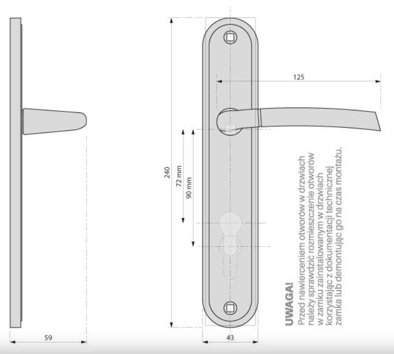 - Blaszka montażowa pod klamkę: 2szt