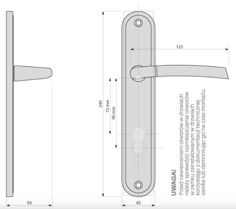 - Blaszka montażowa pod klamkę: 2szt