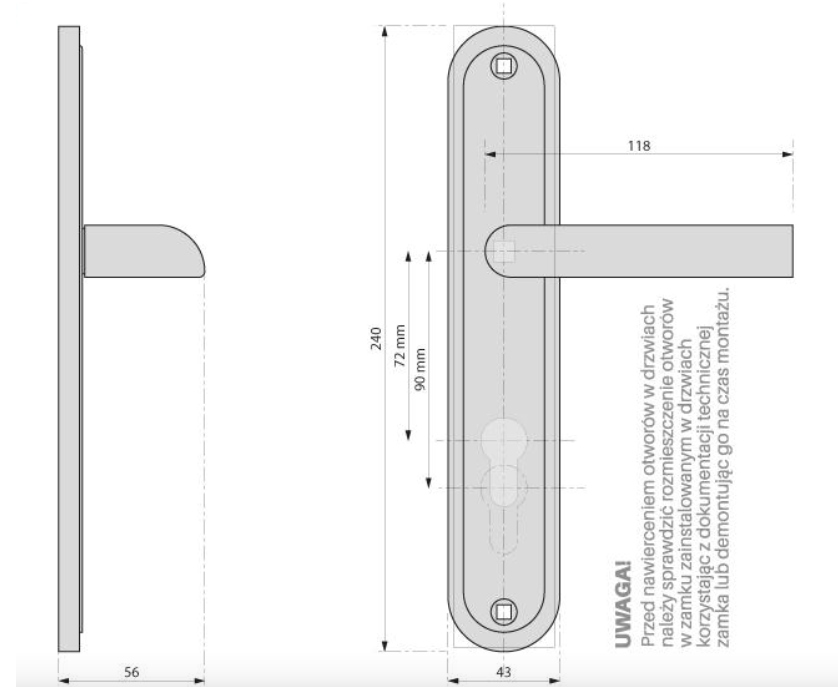 - Blaszka montażowa pod klamkę: 2szt
