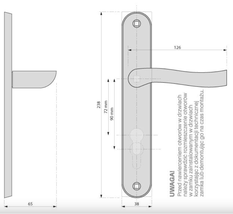 - Blaszka montażowa pod klamkę: 2szt