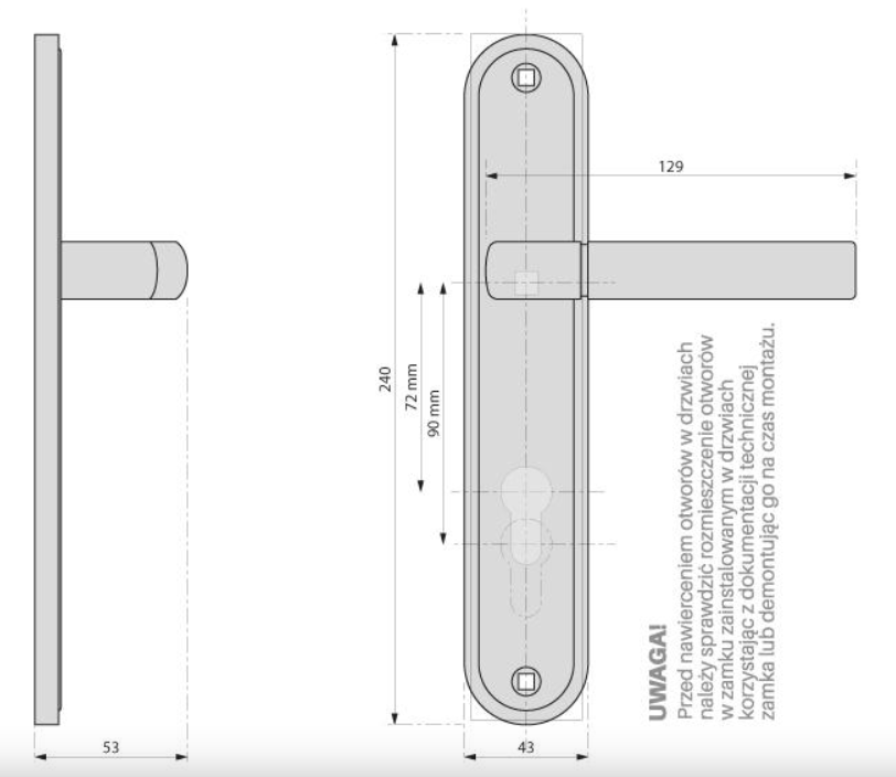 - Blaszka montażowa pod klamkę: 2szt